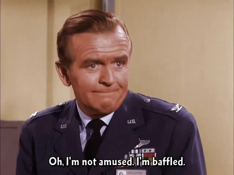"Oh, I'm not amused.  I'm baffled."  From I Dream of Jeannie, season one, episode 16.
