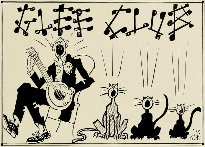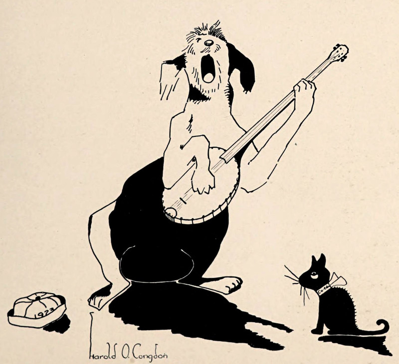 #vintage illustration #cat #vintage yearbook #yearbook #banjo #1920s #musician #illustration