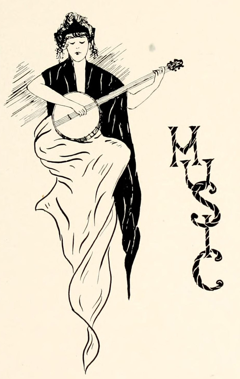 #vintage illustration #vintage yearbook #yearbook #banjo #1920s #singing #musician #illustration