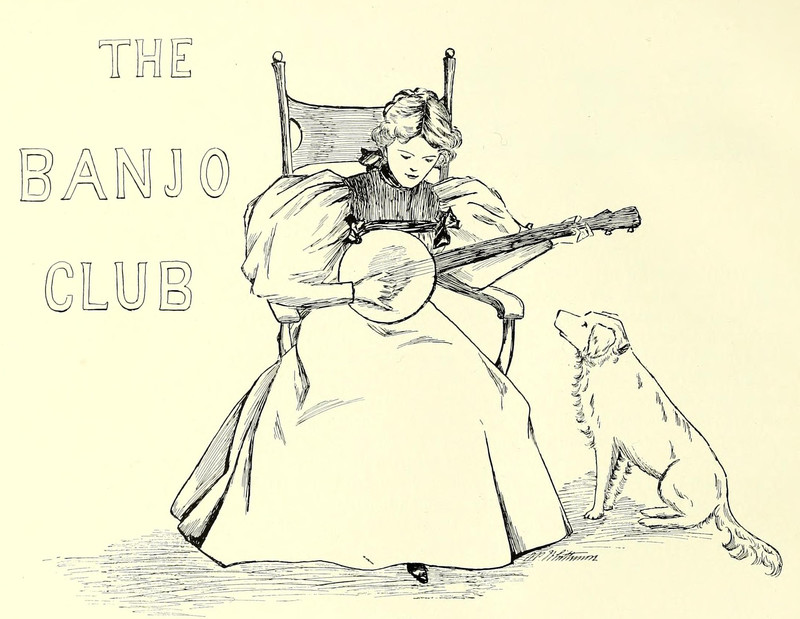 #vintage illustration #dog #vintage yearbook #yearbook #banjo #1890s #musician #illustration