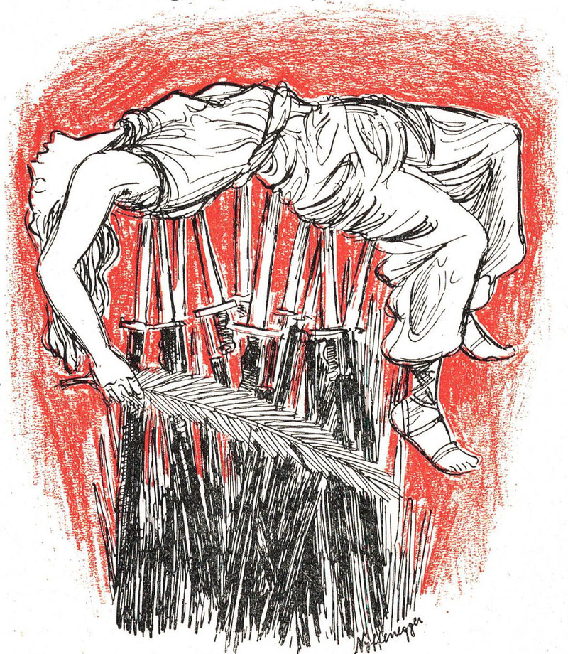 Peace sleeps on a bed of bayonets.  From Der Bärenspiegel, 1937.