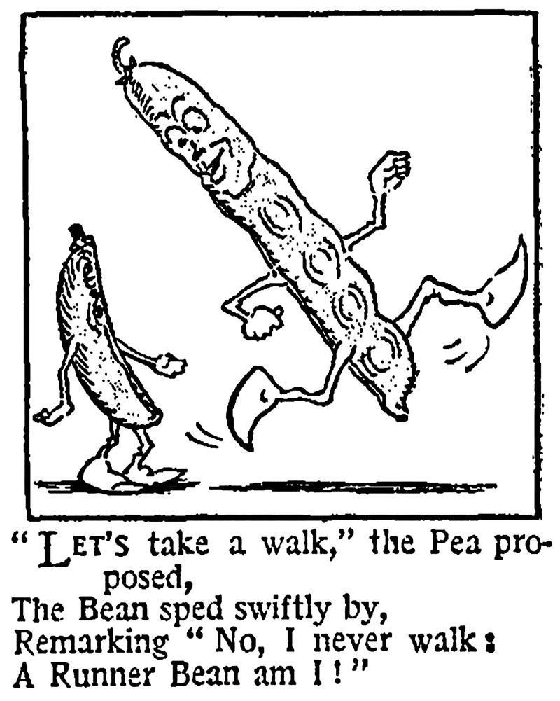 #vintage illustration #anthropomorphism #faces in things #1920s #illustration #vegetable people #poem #bean #pea