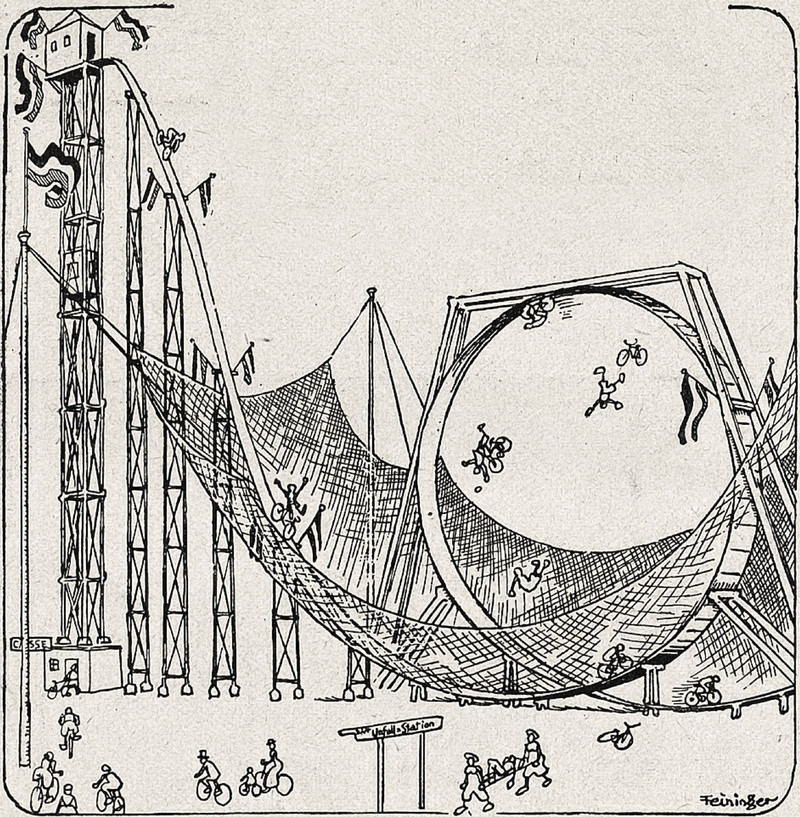 #vintage illustration #bicycle accident #stunt bike #bicycle stunt #safety net #loop