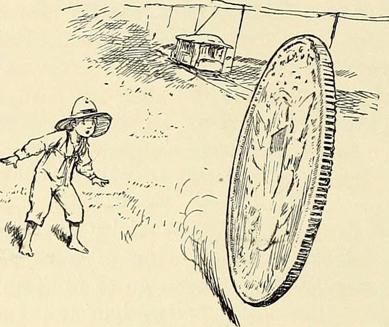 #vintage illustration #money #big coin #big money #rolling coin #illustration #coin #art