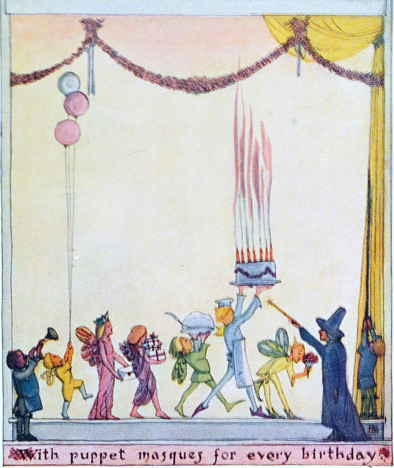 Puppet masques for every birthday!  From The Heroes of the Puppet Stage by Madge Anderson, 1923.