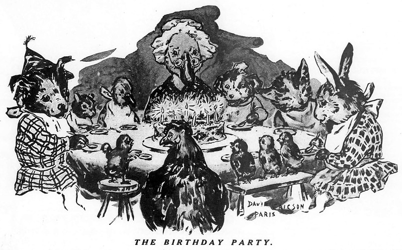 #vintage illustration #anthropomorphism #illustration #animal friends #1910s #birthday party