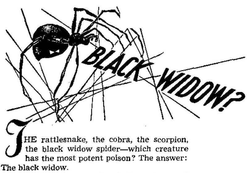 News of the black widow's poison, from back when journalists had integrity.  From Awake magazine, 1958.