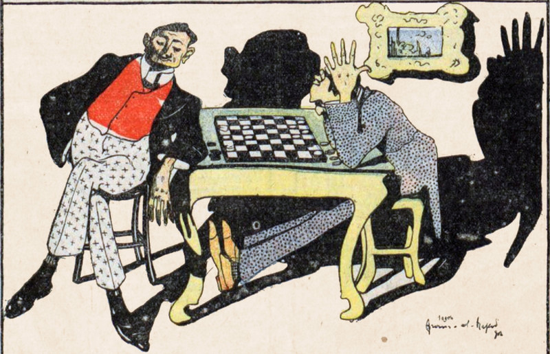 The guiding spirit of the game of Chess, from The Tomahawk, June 12, 1869.   See If a Chessman Were a Word: A Chess-Calvino Dictionary.