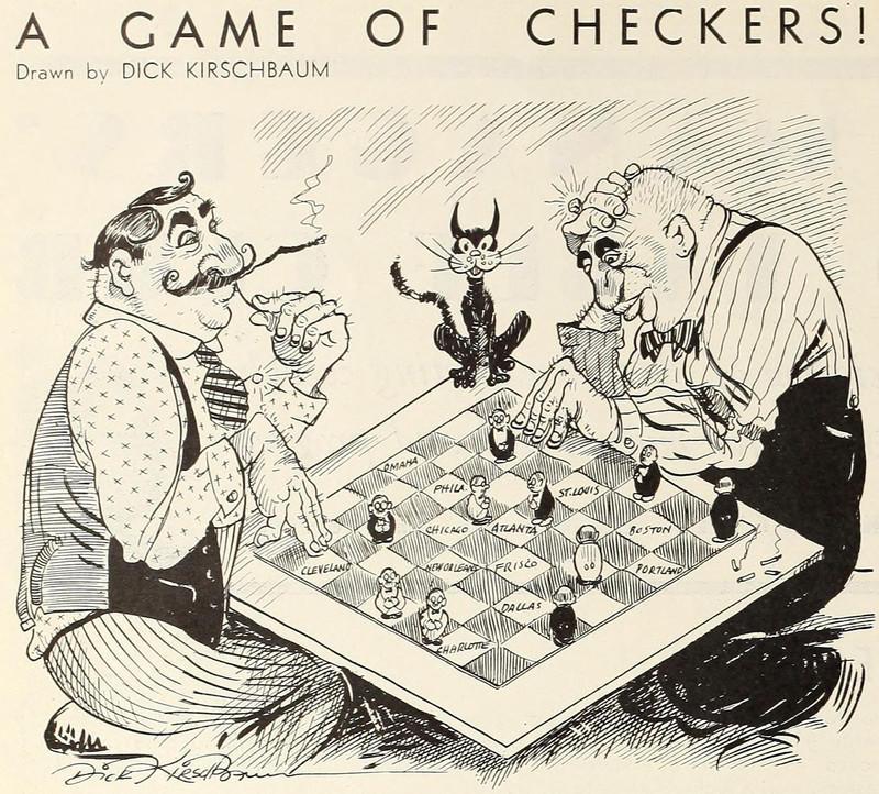 Checkers, but with chess-like pieces.  From Motion Picture Herald, 1933.