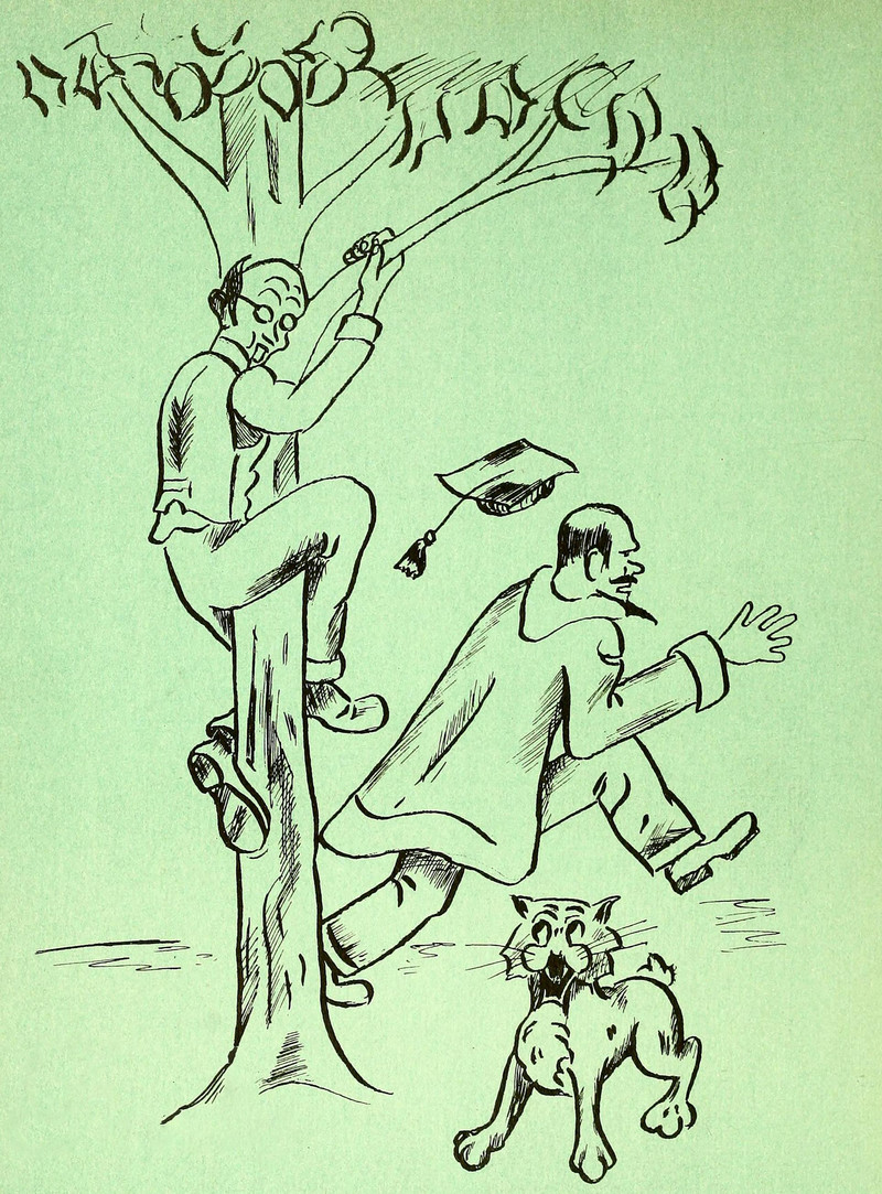 #vintage illustration #vintage yearbook #yearbook #1930s #illustration #up a tree #bobcat