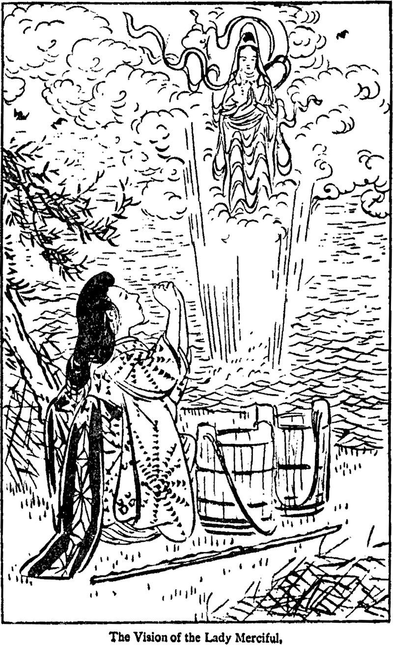"Jizo, the bodhisattva (bosatsuin in Japanese) has become the most beloved figure of Japanese Buddhism. Stone figures of Jizo populate temple grounds, city and country. O-Jizo-Sama, as he is often respectfully called, is one of the most venerated Bosatsu in all of Japan. He is usually portrayed as a monk, wearing robes with a shaven head. He often holds a staff called a shakujo. This is used to both scare away living creatures so he doesn’t hurt them accidentally, and to awaken us from our dream-like world of illusion. On images and statues, he holds a wish-granting jewel that he shares with Kanzeon Bosatsu and Vishnu in the Hindu tradition" (Traditional Kyoto). Image from Harper's, 1895.