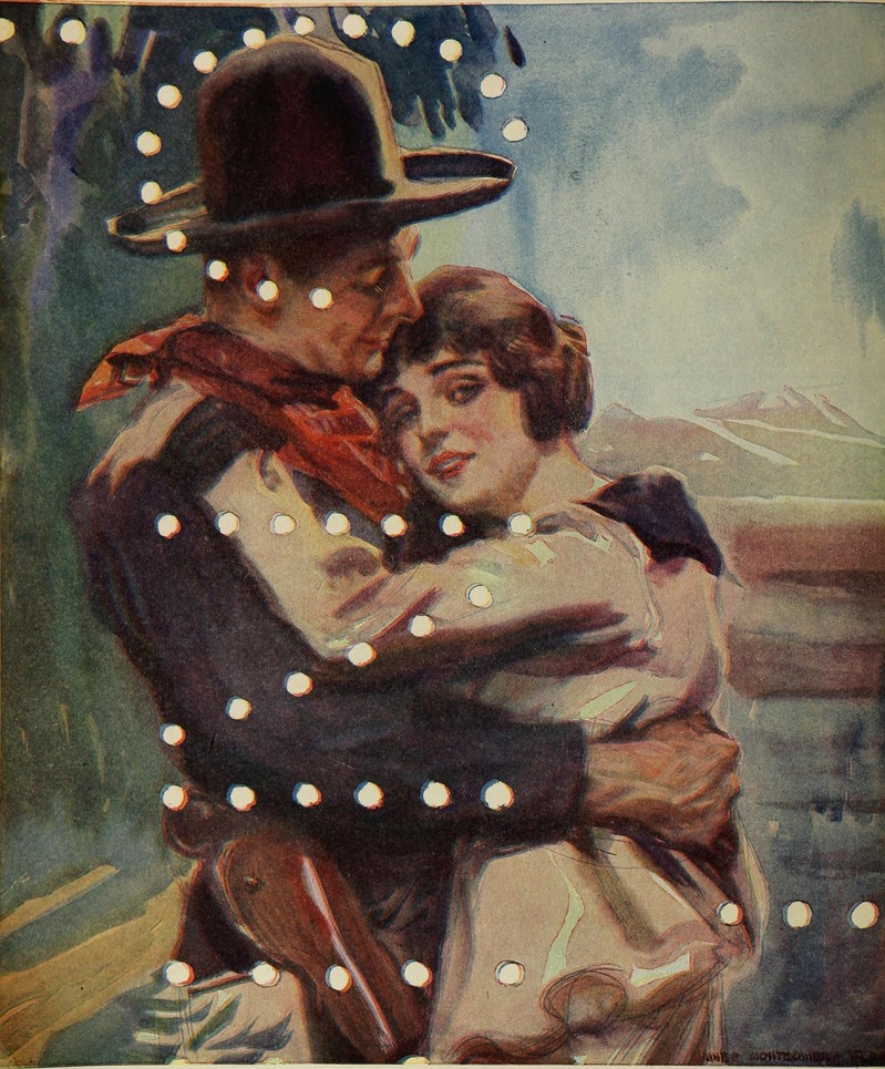 Here's a precursor to Bonnie and Clyde being riddled with bullet holes, from Film Flashes: The Wit and Humor of a Nation in Pictures, 1916.
