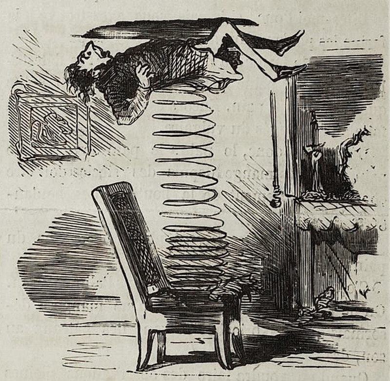#vintage illustration #practical joke #spring #chair #booby-trap