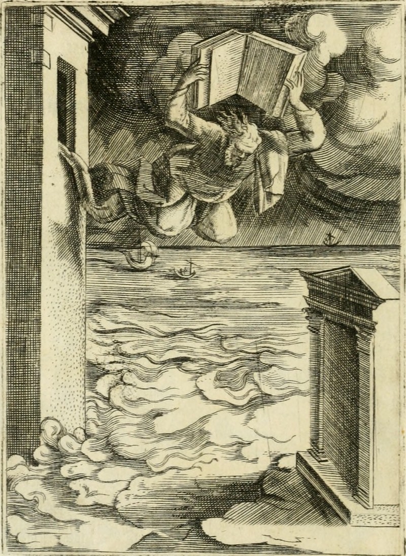 "A good book gives you wings," says the Helsinki Central Library.  Our illustration appears in Achillis Bocchii Bonon, 1555.