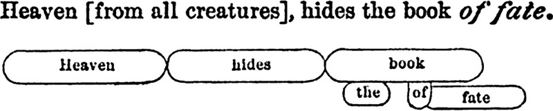 "Heaven [from all creatures], hides the book of fate."  From A Brief English Grammar with Illustrations and Diagrams by Stephen Watkins Clark, 1876.