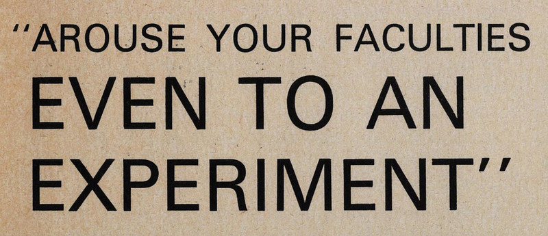 "Arouse your faculties even to an experiment."  From The Instructor, 1970.