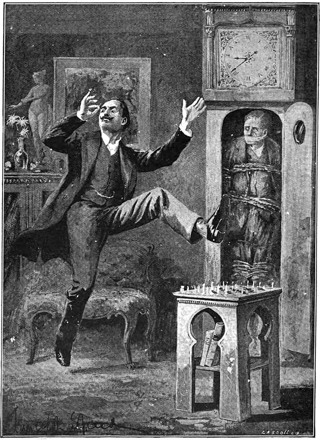 #vintage illustration #bound and gagged #grandfather clock #1890s #dancing a jig #illustration