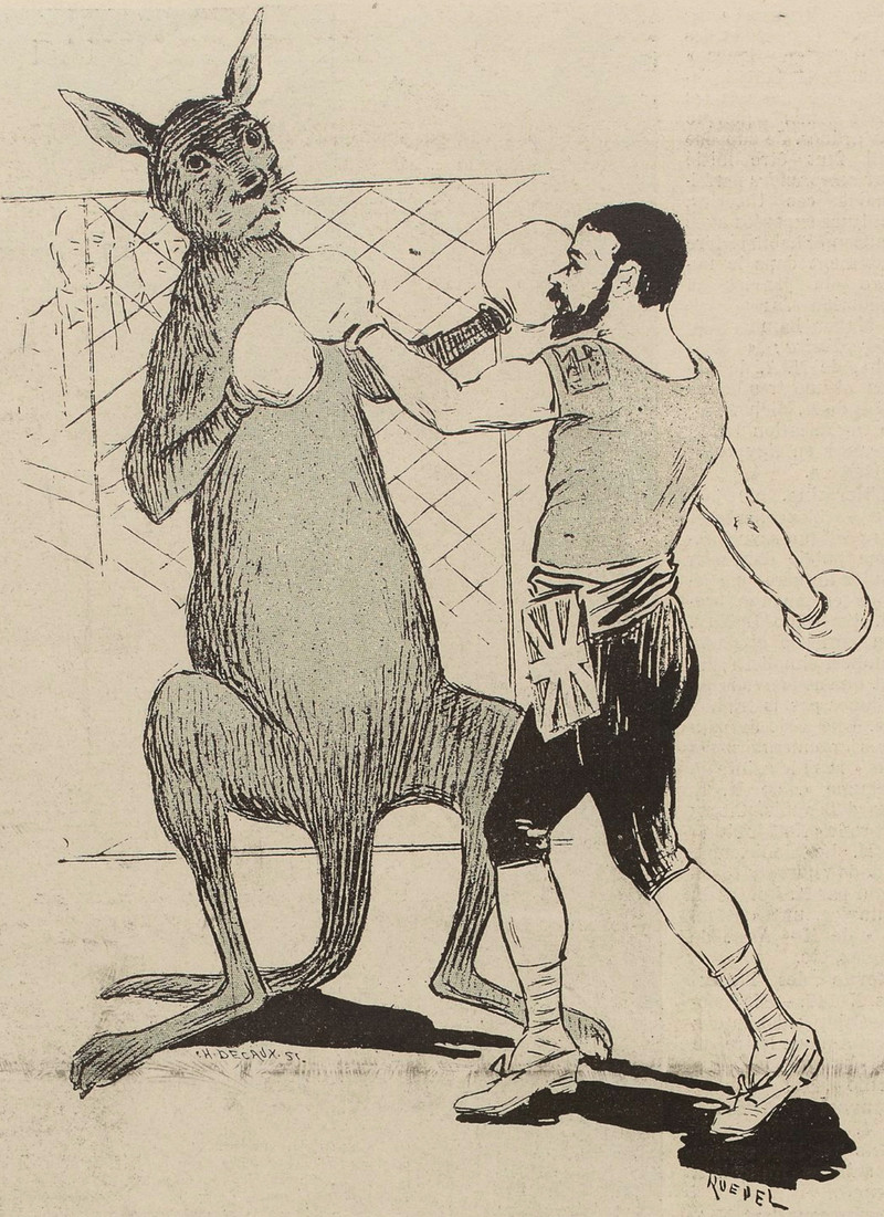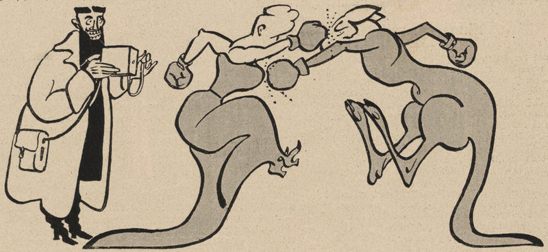 A boxing kangaroo who refused to be photographed. From The Children's Newspaper, 1933.