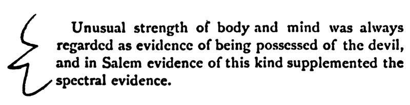 It's good to see brackets that resemble human face silhouettes.  From The Psychology of the Salem Witchcraft Excitement of 1692, and Its Practical Application to Our Own Time by George Beard, 1882.