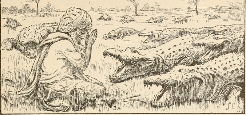 #vintage illustration #crocodile #alligator #prayer #punjab #brahman #illustration
