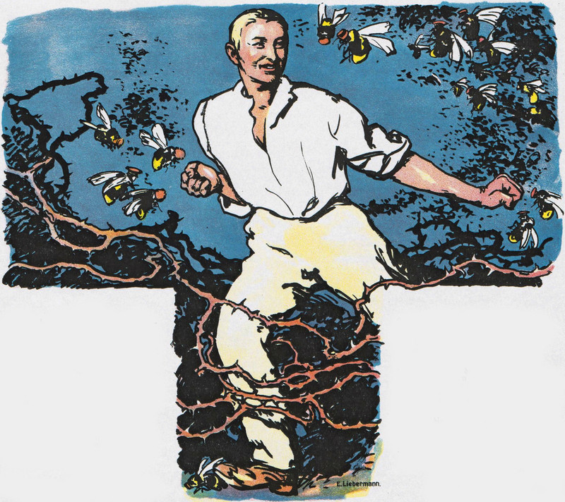 Thorns and stingers.  From Bunte Kriegsbilderbogen, 1915.