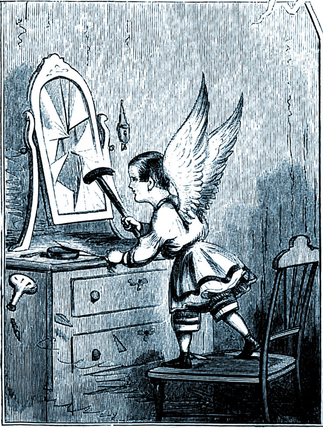 Ken responds: "The mirror is cracked in an amazingly artistic way! Radiating heavenward, with occasional communication between the rays. Fortunately it wasn't right in the middle, which would have been "conveniently conventional", but not so far to the side, as to not draw attention to itself. Much more interesting and unique than if it had never been cracked. The video made my head swim, but I got a warm feeling from it."