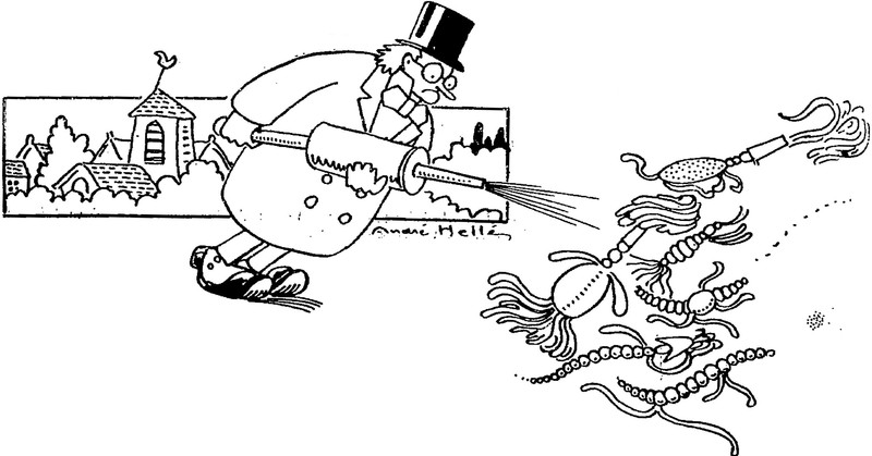 #vintage illustration #vintage ad #germs #illustration #germicide #disinfectant #bug spray #ad