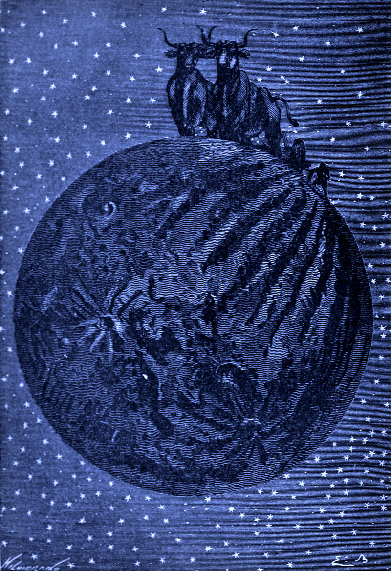 #vintage illustration #moon #jules verne #cow jumped over the moon #lunar surface #space animals #bulls #illustration