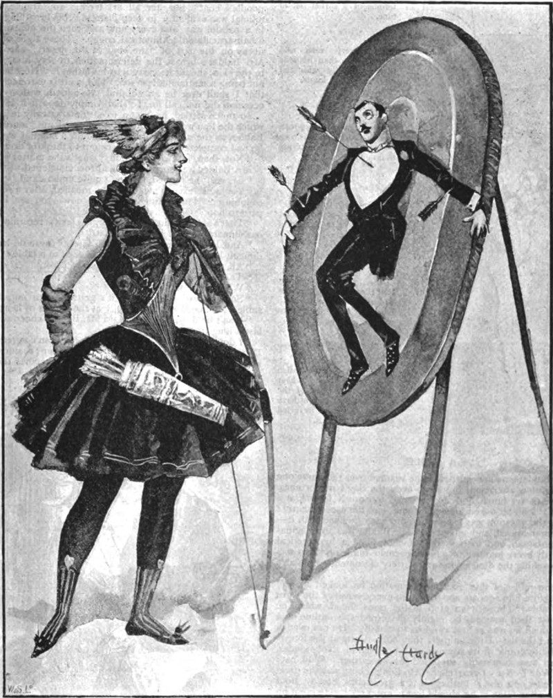 The "eye of the tiger" is in actuality a bullseye. Our illustration is by F. Opper, from Bill Nye's History of the United States (1894).