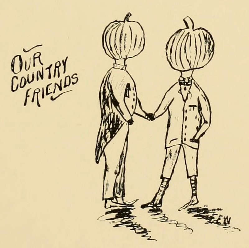 The phrase "country bumpkin" is believed to derive from a Middle Dutch word meaning "small barrel." But here are some country pumpkins. From Susquehanna's 1900 yearbook.