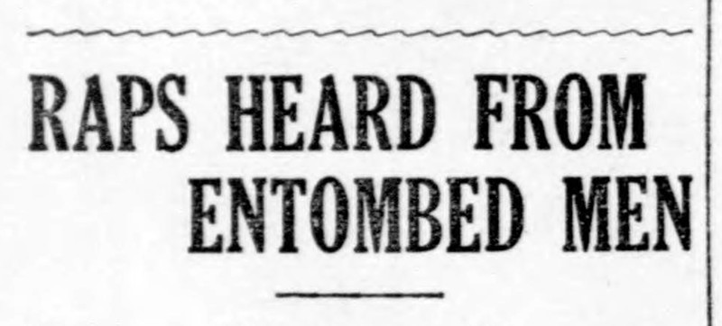 "Raps heard from entombed men."  From the Duluth Herald, 1911.