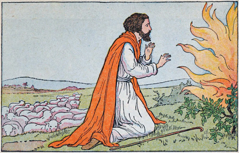#vintage illustration #moses #biblical #1900s #illustration #burning bush