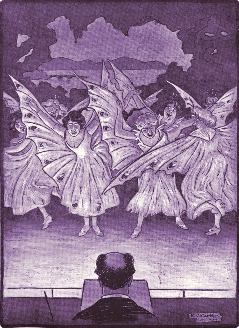 "A slight hitch during the dance owing to some of the butterflies becoming entangled."  From The Sketch, 1904.