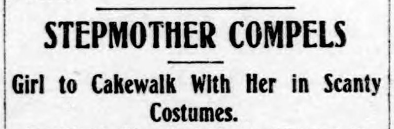 "Stepmother compels girl to cakewalk with her in scanty costumes."  From The Duluth Evening Herald, 1906.