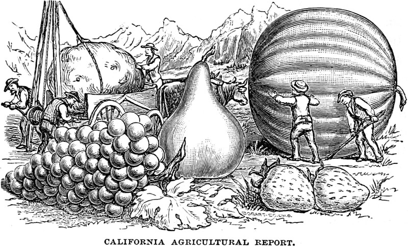 #vintage illustration #giant fruit #illustration #california agriculture #fruit
