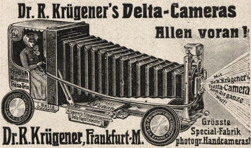 Not hubcaps but lens caps, and every race is a photo finish -- the camera car.  From Lustige Blätter, 1906.