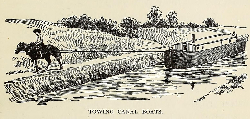 #vintage illustration #horse #boat #illustration #canal #canal boat