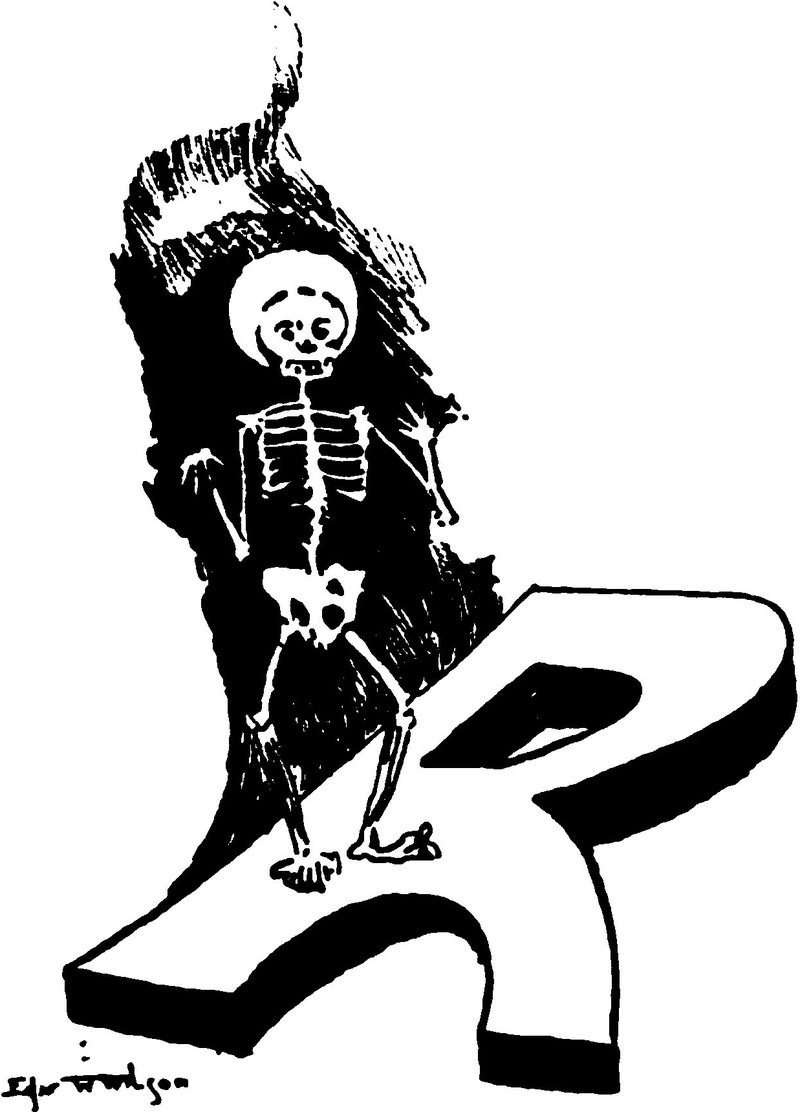 #vintage illustration #skeleton #ornate capital #illustration #letter r #capital r