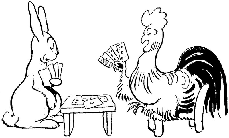 #vintage illustration #anthropomorphism #rabbit #playing cards #chicken #bunny #card players #card game