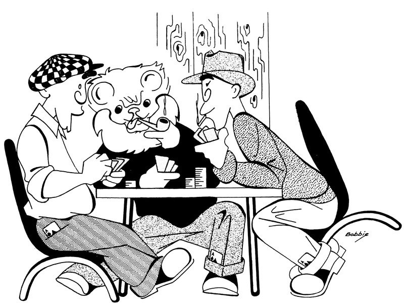 #vintage illustration #anthropomorphism #vintage yearbook #yearbook #lion #pipe smoker #card players #illustration