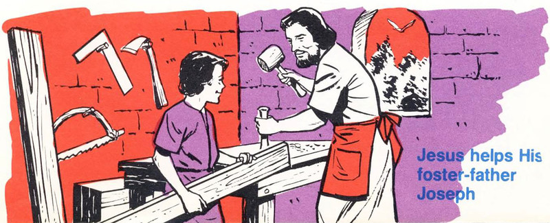 #vintage illustration #jesus #illustration #carpenter #1980s #joseph #foster parent #foster father #carpentry