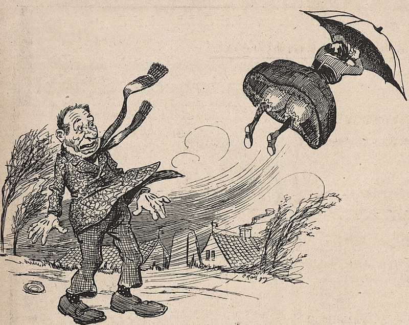 #vintage illustration #umbrella #weightless #windy #the people could fly #carried aloft
