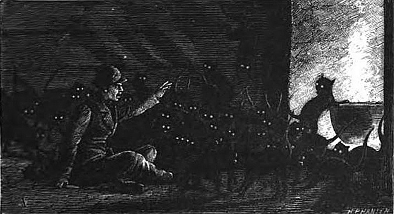 Cats aren't staring into space -- they're looking at themselves with the mirrors in their eyes. The headline reads, "Mirrors in cat's eyes cause them to shine at night." From Popular Mechanics, 1934.