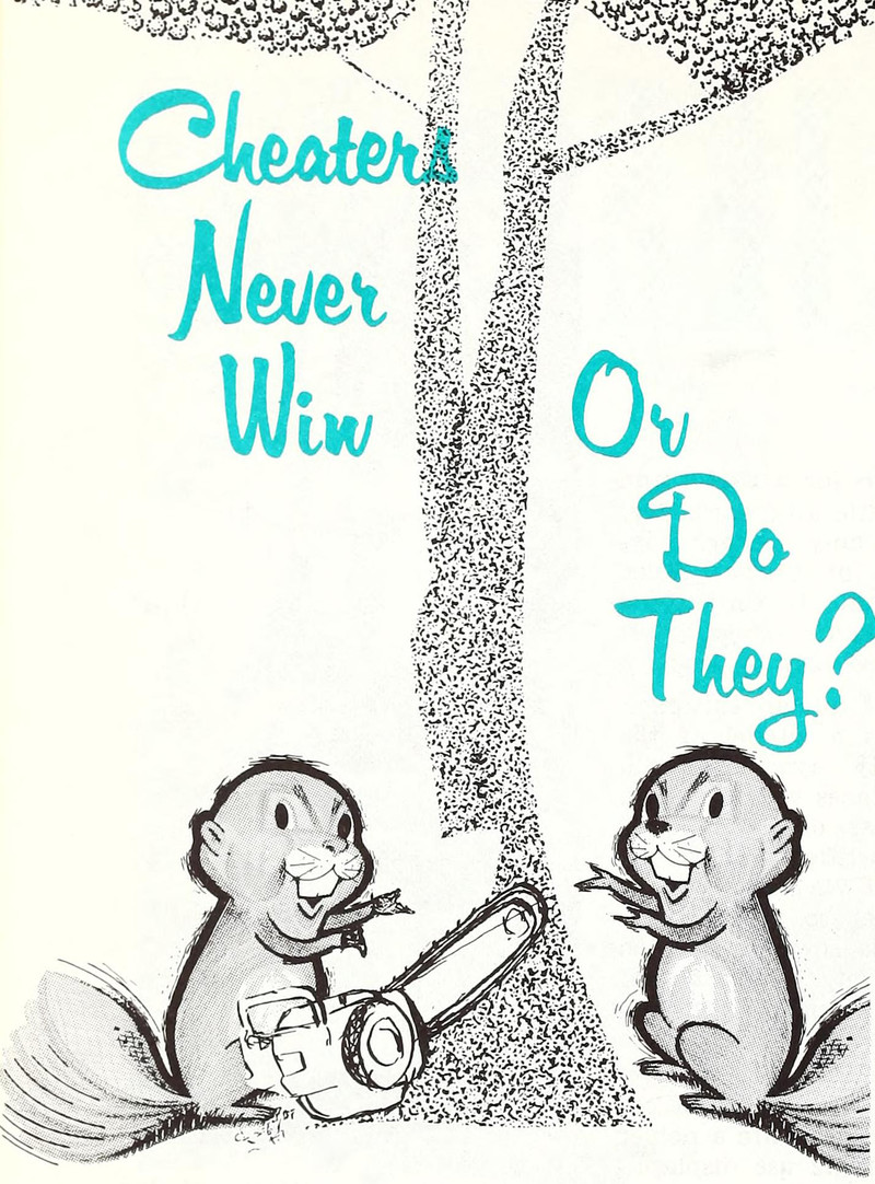 "Cheaters never win, or do they?"  From Lighted Pathway, 1963.