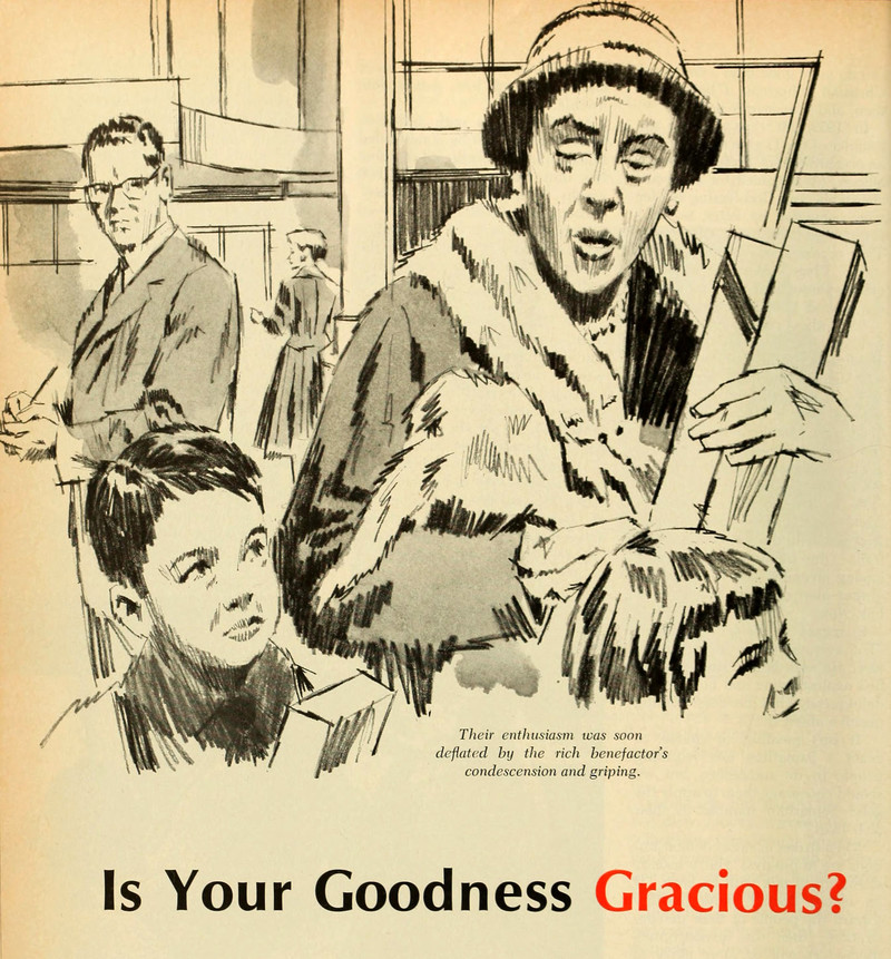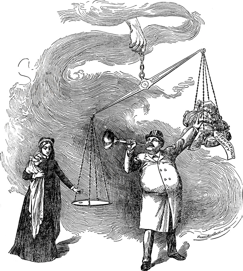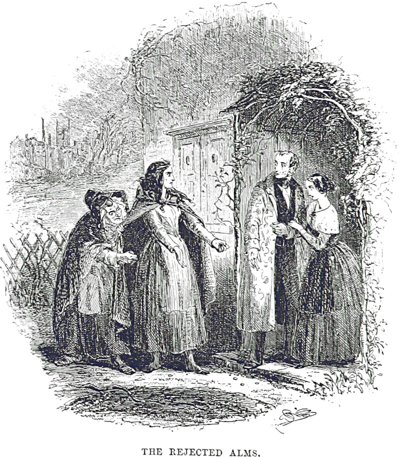 Top illustration: "Please turn you head away. Don't look—don't!" ( The Quiver, 1886). Bottom illustration: "The rejected alms." ( The Letters of Charles Dickens, 1893.) We find an explanation in Frank Crane's Just Human (1915): "Most so-called charity is evil. It is bad both ways. It deceives the giver by a false salve to his conscience. ... The gift is also a curse to the recipient. It destroys self-respect. Both takers and givers of charity are debased."