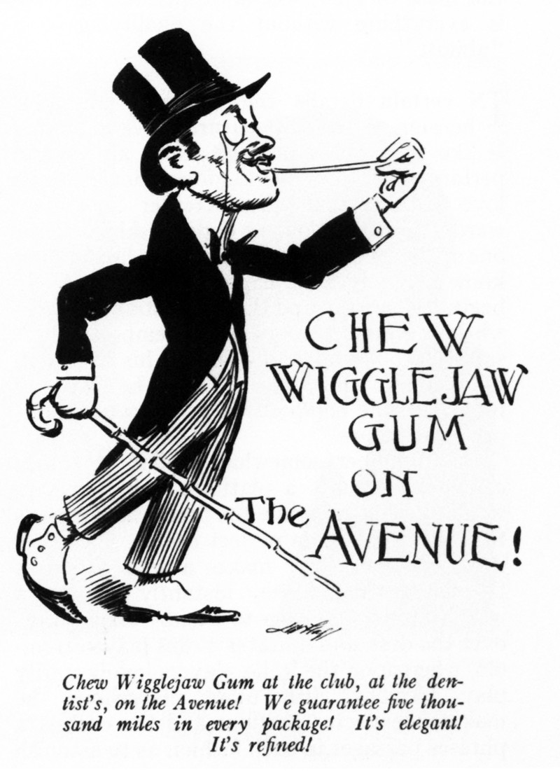 "The chewing-gum rises to the occasion."  From The Children's Newspaper, 1933.