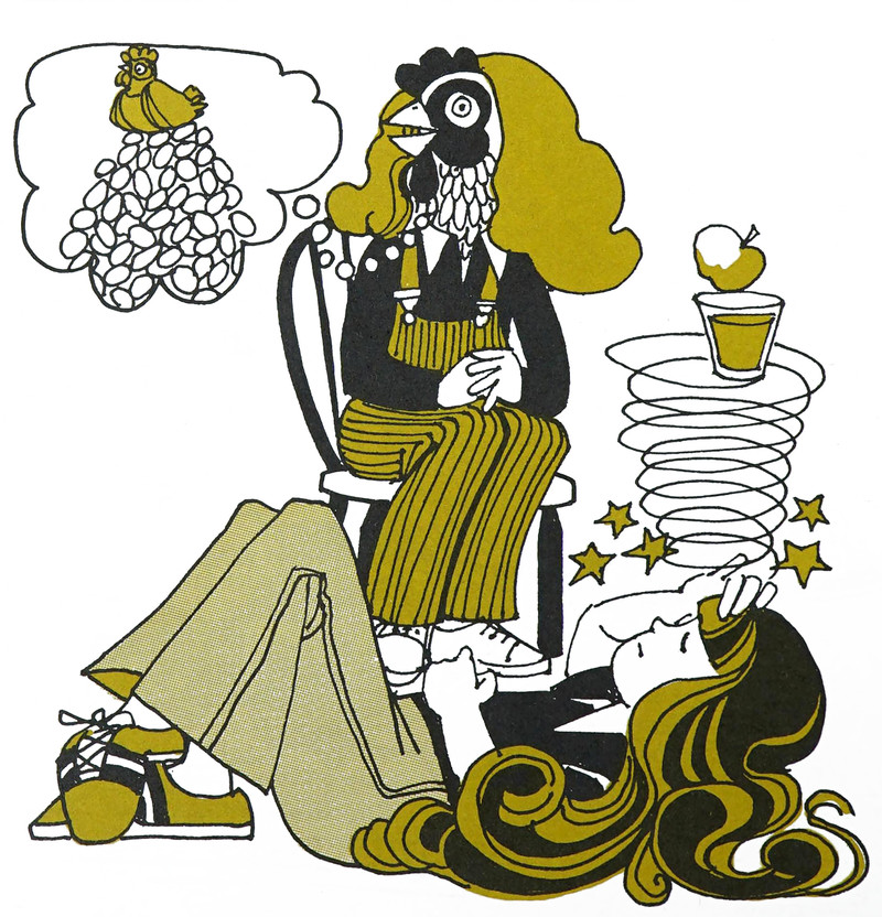 #vintage illustration #hybrid #seeing stars #drunk #hallucination #1970s #illustration #chicken people #chicken headed