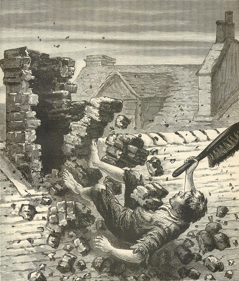 #vintage illustration #falling #chimney sweep #rooftop #chimnet