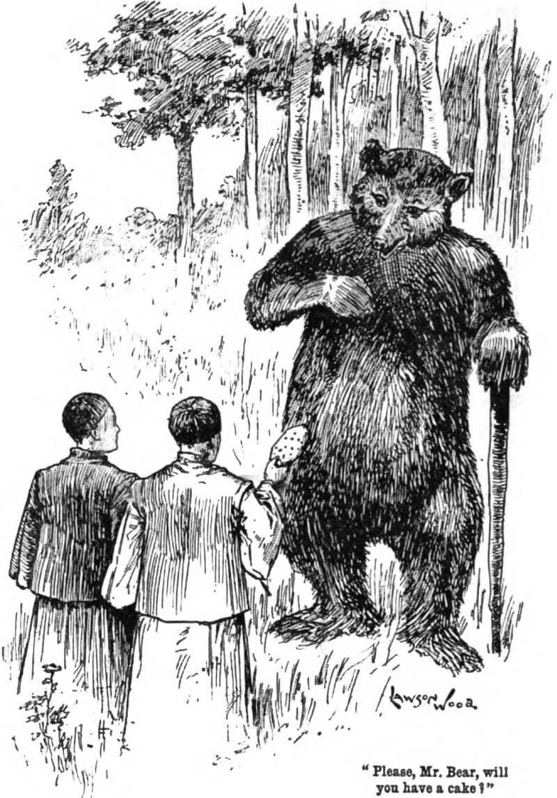 "Please. Mr. Bear, will you have a cake?"  From Pearson's, 1898.