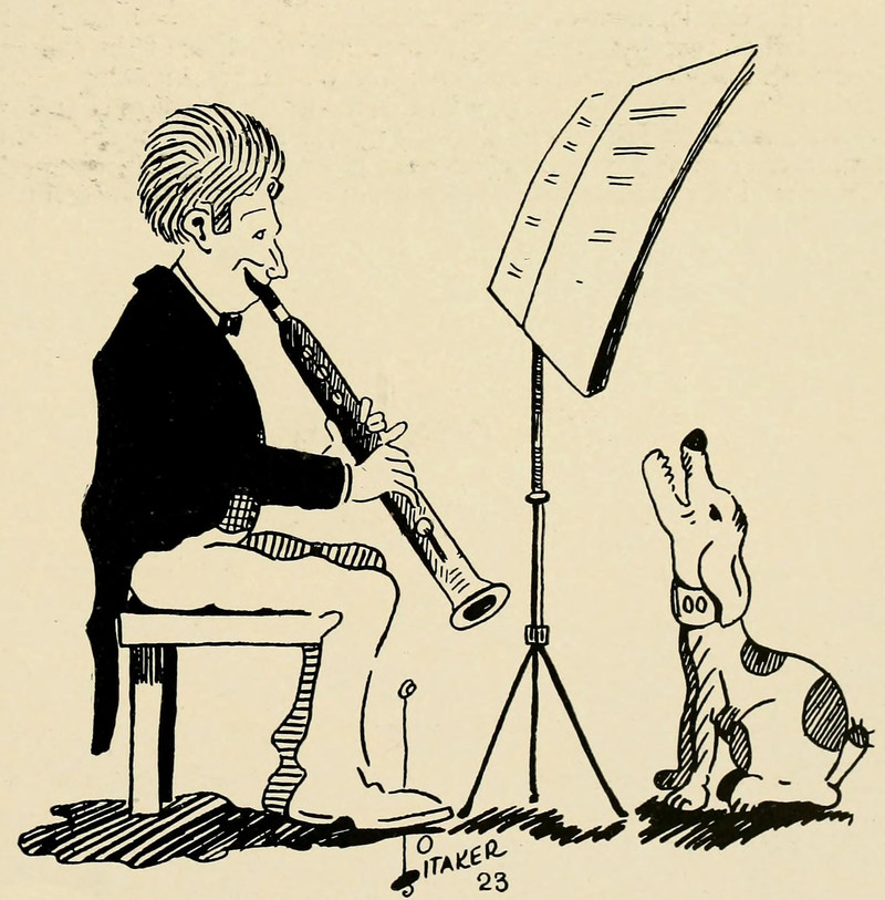 #vintage illustration #dog #vintage yearbook #yearbook #musical animal #musician #clarinet